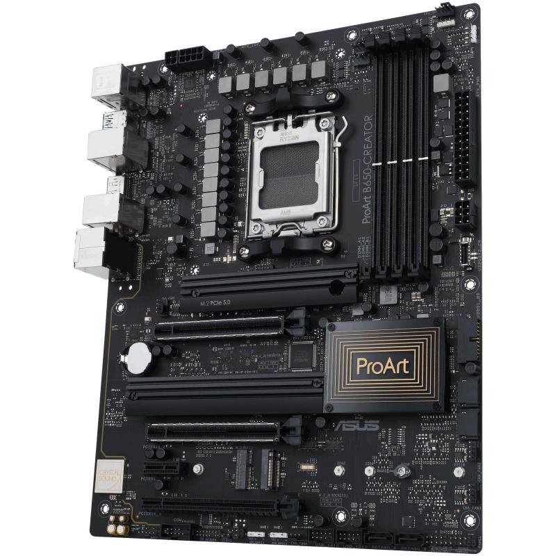 PROART B650-CREATOR: ProArt B650-Creator es una placa base avanzada diseñada para cargas de trabajo intensivas de creación de contenido como producción virtual, renderizado 3D y edición de video 4K/8K. Desata el rendimiento de los procesadores AMD Ryzen™ Serie 7000 a través de una entrega de energía robusta y un diseño de refrigeración, y su conectividad integral incluye Ethernet a bordo de 2.5 Gb y 1 Gb, un conector USB 3.2 Gen 2x2 Tipo-C® en el panel frontal con Quick Charge 4+, y DisplayPort™ a través de USB-C.