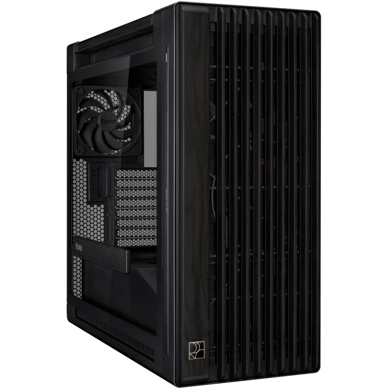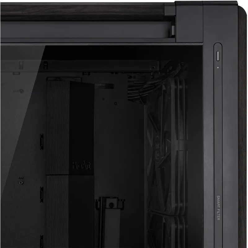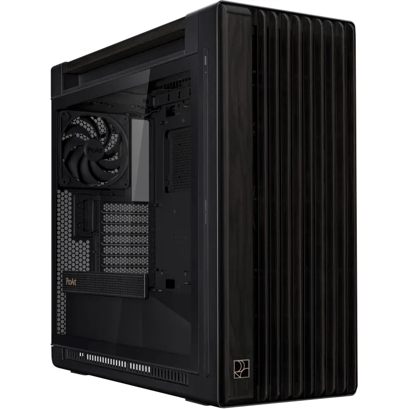 Torre Asus ProArt PA602 Wood Edition con panel de vidrio templado, ventiladores de 200 mm, amplio espacio interno