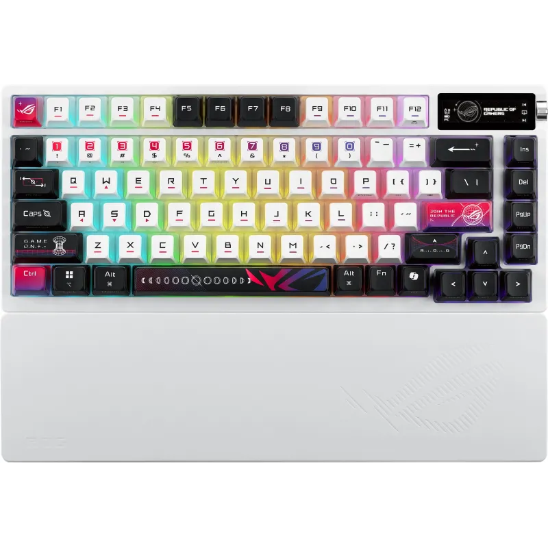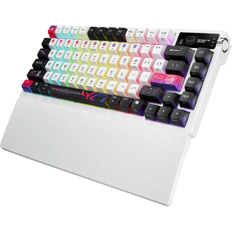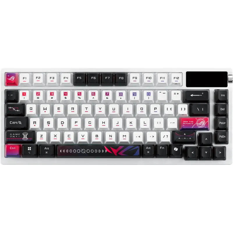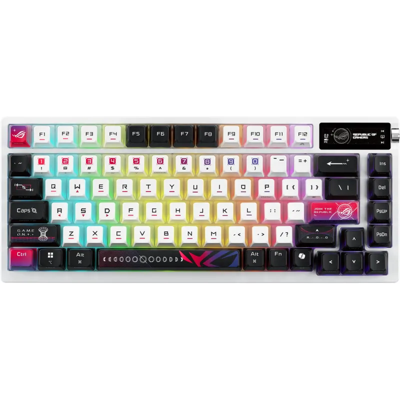 Teclado Asus ROG Azoth X con pantalla OLED, interruptor mecánico, conexión USB, Bluetooth y RF, retroiluminación RGB y formato 75%