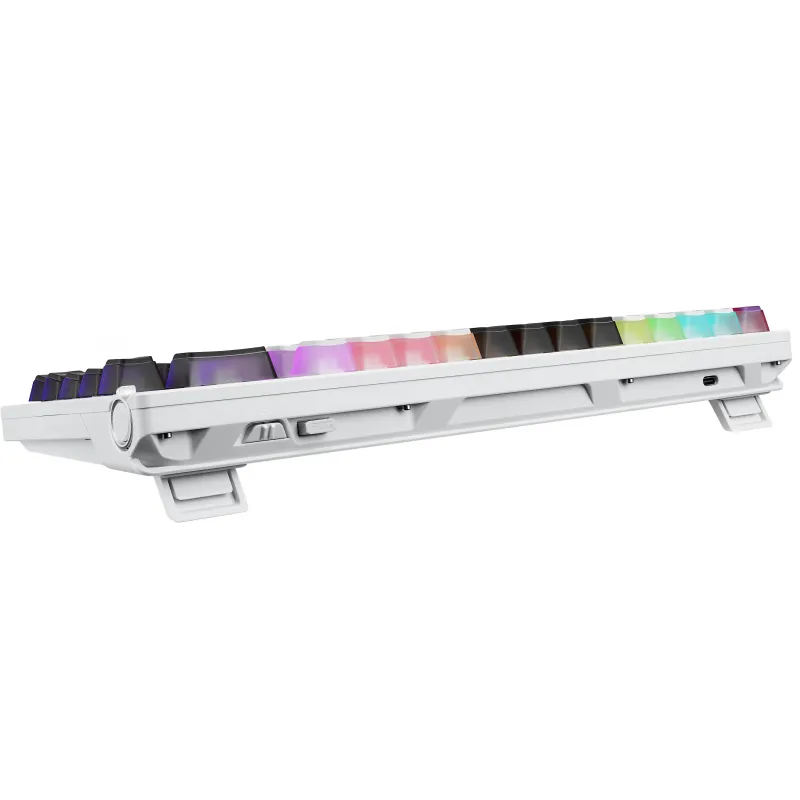 Teclado Asus ROG Azoth X es una opción avanzada para quienes buscan precisión y rendimiento en el juego. Este teclado combina conectividad inalámbrica y alámbrica mediante USB, RF Wireless y Bluetooth, lo que garantiza una experiencia versátil y sin interrupciones. Su formato del 75% optimiza el espacio sin sacrificar funcionalidad, mientras que la retroiluminación LED RGB multicolor permite personalizar el entorno de juego. Incorpora una pantalla OLED que ofrece información útil en tiempo real, como estado del sistema o perfiles activos. Además, cuenta con memoria incorporada para almacenar configuraciones personalizadas, ideal para jugadores exigentes. Su interruptor mecánico asegura una respuesta precisa y rápida, proporcionando una ventaja competitiva en partidas intensas.