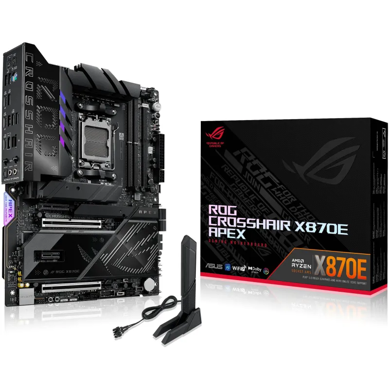 Placa Base Asus ROG CROSSHAIR X870E APEX, soporte para memoria DDR5 128 GB, Wi-Fi 7, Bluetooth 5.4 y compatibilidad con procesadores AMD Ryzen