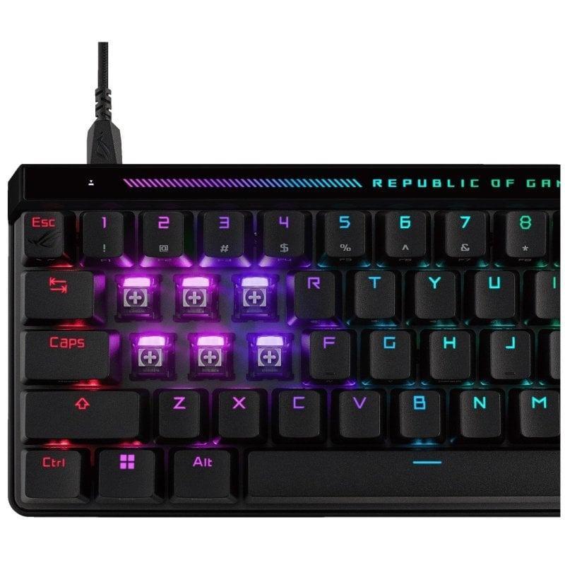 Teclado Asus ROG Falchion Ace HFX compacto 65% switches magnéticos RGB personalizable N-key rollover y sondeo 8000 Hz Ideal para gaming.