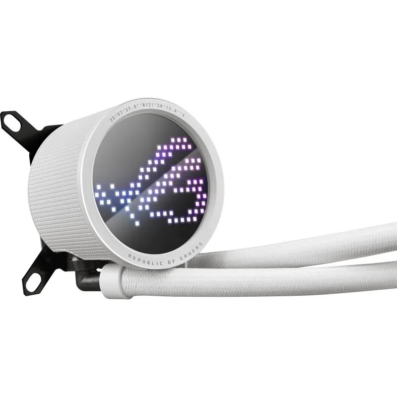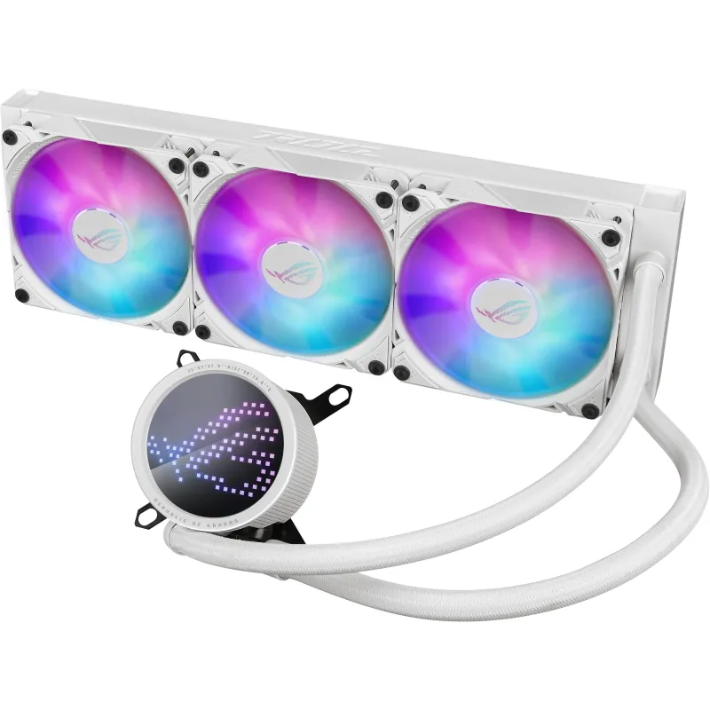 DOMINA GLORIOSAMENTE LOS TÉRMICOS DE TU EQUIPO DE ALTO RENDIMIENTO: El ROG Ryuo III 360 ARGB White Edition. Su carcasa inspirada en el polo complementa las construcciones completamente blancas y enmarca una pantalla AniMe Matrix que se puede personalizar para expresar de manera única tu lealtad. Encerrado más profundamente se encuentra una bomba Asetek de 8ª generación que hace circular el refrigerante a través de un radiador de mayor capacidad, coronado con ventiladores ROG ARGB de 120 mm para enfriar al máximo las últimas CPU.