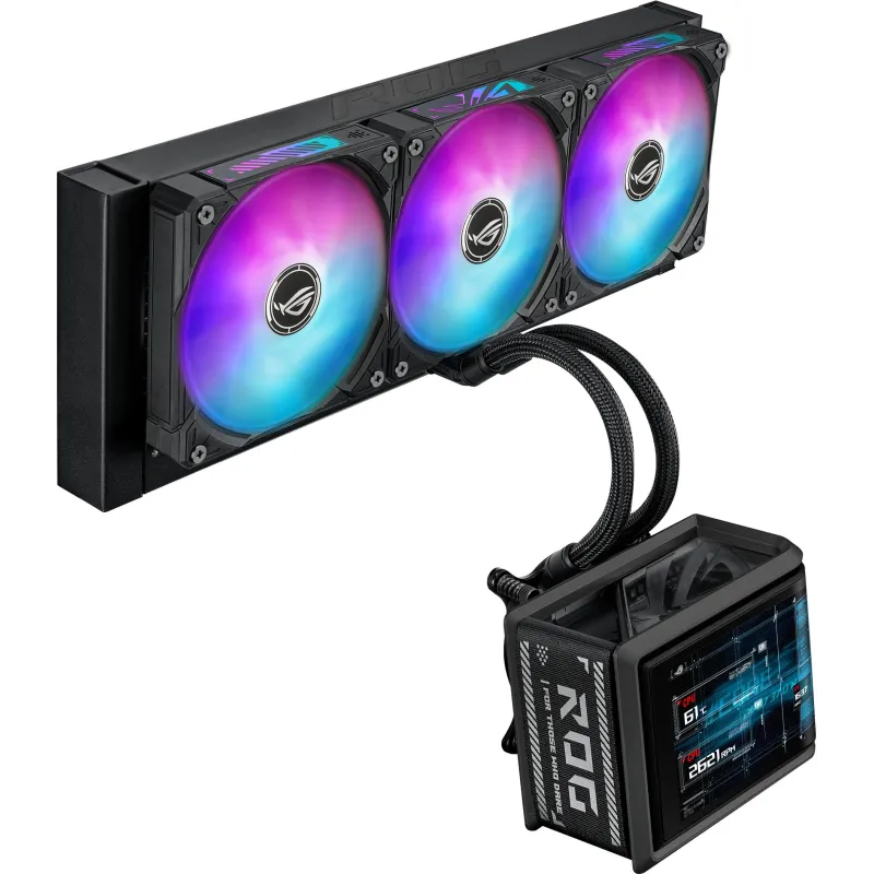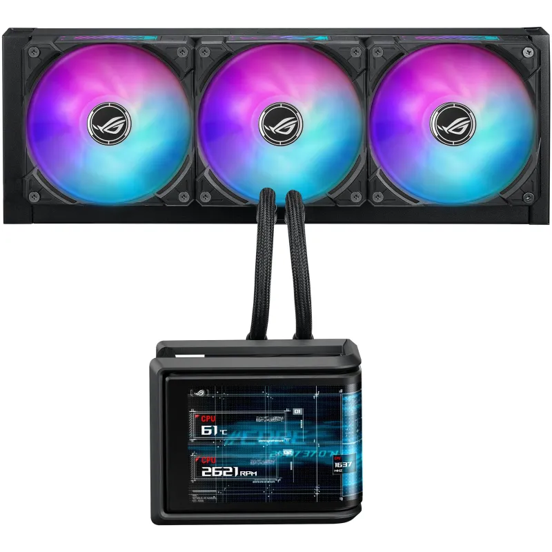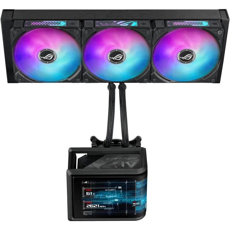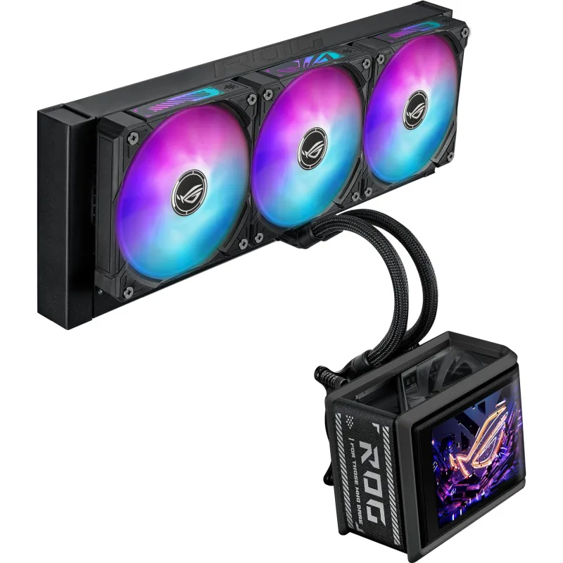 Kit de Refrigeración Líquida ASUS ROG Ryuo IV SLC 360 ARGB con pantalla incorporada, presión estática del ventilador 5.45 mm , H2O y tres ventiladores PWM