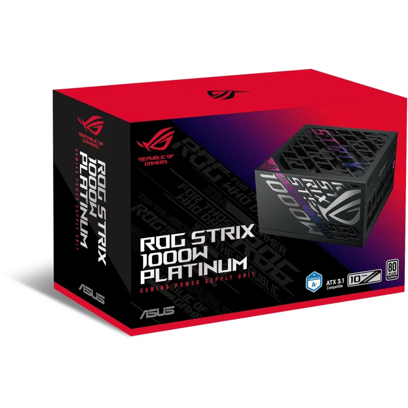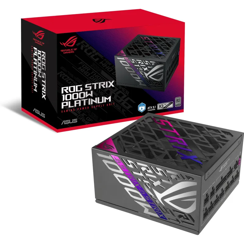Fuente de Alimentación Asus ROG STRIX 1000W Platinum con certificación 80 PLUS Platinum, fuente de alimentación ATX 1000 W y con protección avanzada