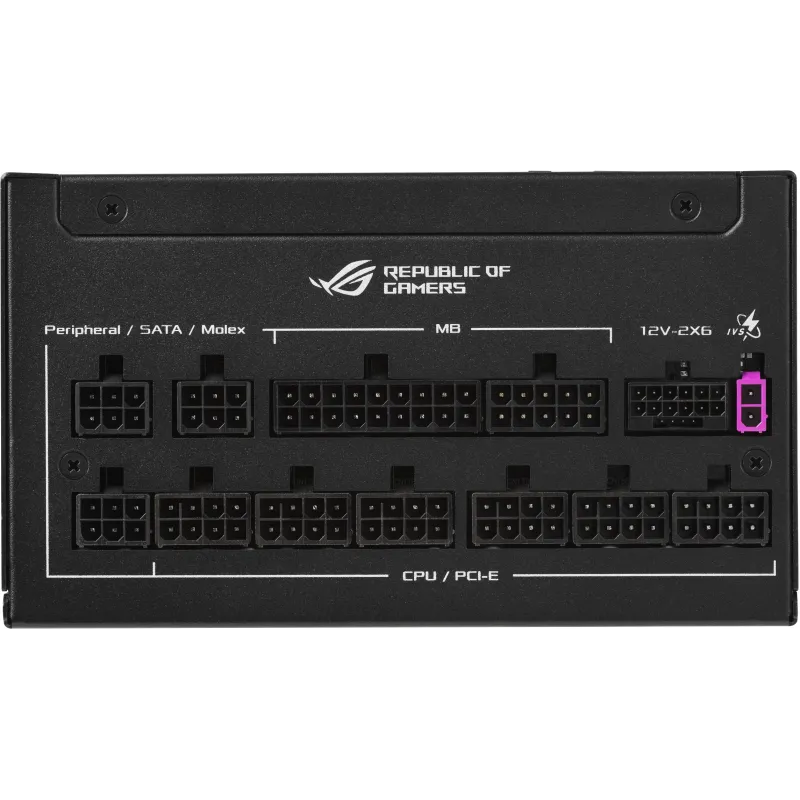 ROG Strix 1200W Platinum es una fuente de alimentación fresca y silenciosa con entrega de energía estable, diseñada para la eficiencia con GaN MOSFET y estabilizador inteligente en un estilo llamativo.