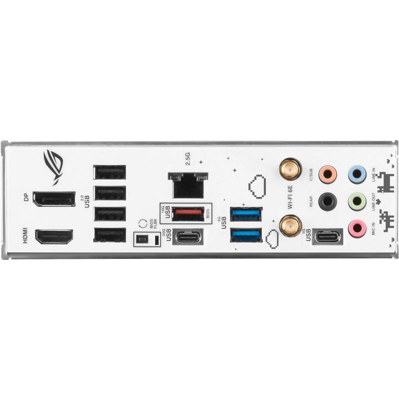 INDUDABLEMENTE ROG STRIX: Las lamas diagonales, el aluminio cepillado y el RGB audaz se han convertido en sellos distintivos de la estética ROG, y el Strix B760-A lleva todos ellos con orgullo. Su esquema de color blanco, plateado y negro combina bien con componentes de colores tanto oscuros como claros. Los acentos de 8 bits muestran algo de orgullo gamer.