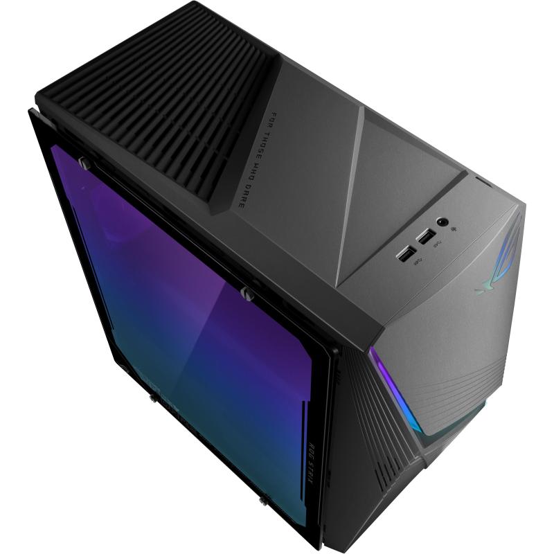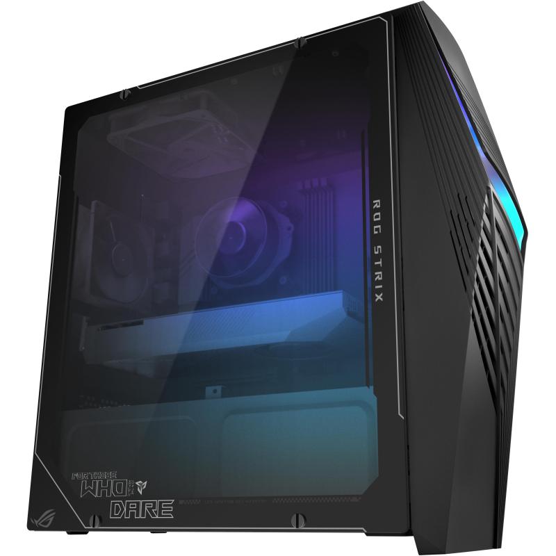 BUILDÉATE ARMADURA: Los elementos de diseño ROG adornan el Strix G13CH y se funden a la perfección con el estilo aerodinámico exterior. Inspirada en los robots futuristas que podrían habitar el universo ROG SAGA, la máquina tiene un aspecto blindado y mecánico. La iluminación RGB interior y la barra de luces integrada en el panel frontal son totalmente personalizables a través de Aura Sync, lo que te permite sincronizar fácilmente tu equipo y tus periféricos como una estación de combate uniforme.