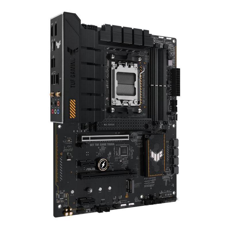 TUF GAMING A620-PRO WIFI: ASUS TUF GAMING A620-PRO WIFI toma todos los elementos esenciales de los procesadores AMD Ryzen de la serie 7000 y los combina con características listas para juegos y durabilidad comprobada. Diseñada con componentes de grado militar, una solución de energía mejorada y un sistema de enfriamiento integral, esta placa base supera las expectativas con un rendimiento sólido y estable para maratones de juegos. Las placas base TUF GAMING también se someten a rigurosas pruebas de resistencia para garantizar que puedan manejar condiciones donde otras pueden fallar. Estéticamente, este modelo incorpora elementos de diseño geométrico y negro resistente para reflejar la confiabilidad y estabilidad que define la serie TUF GAMING.
