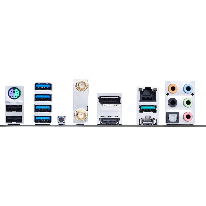 La placa base incluye una variedad de puertos y conectores que cubren todas las necesidades modernas. En el panel trasero, encontrarás puertos USB 3.2 Gen 1 y Gen 2, incluyendo un puerto tipo C para mayor conveniencia. También dispone de salidas HDMI 2.1 y DisplayPort 1.2, soportando una resolución máxima de 3840 x 2160 píxeles, ideal para configuraciones de alta definición. Además, ofrece soporte de audio 7.1 canales para una experiencia inmersiva en juegos y entretenimiento.