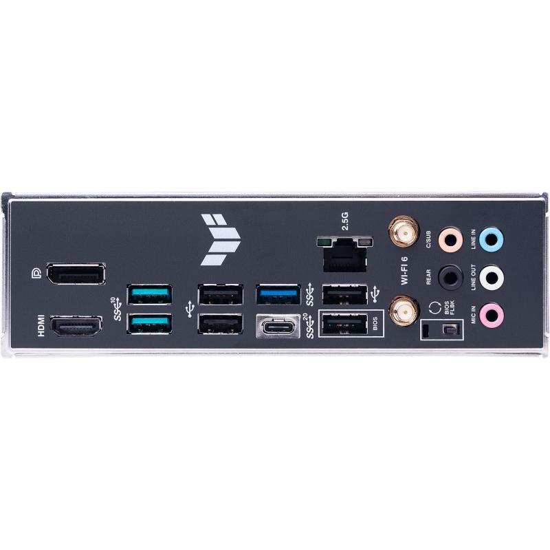 En cuanto a conectividad, esta placa base no se queda atrás. Incorpora Wi-Fi 6 (802.11ax) y Bluetooth 5.2 para conexiones inalámbricas rápidas y estables, además de un puerto Ethernet de 2.5 Gigabit para una experiencia de red de alto rendimiento. Su panel trasero incluye una amplia variedad de puertos USB, incluyendo un puerto USB 3.2 Gen 2x2 Tipo C, para garantizar compatibilidad con los dispositivos más modernos. También cuenta con salidas HDMI y DisplayPort, ideales para configuraciones de múltiples monitores.
