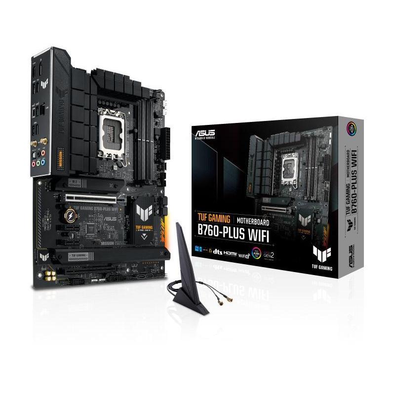 TUF GAMING B760-PLUS WIFI: Toma todos los elementos esenciales de los últimos procesadores Intel y los combina con características listas para el juego y durabilidad comprobada. Diseñada con componentes de grado militar, una solución de energía mejorada y un sistema de enfriamiento integral, esta placa base supera las expectativas con un rendimiento sólido como una roca para juegos de maratón. Las placas base TUF GAMING también se someten a rigurosas pruebas de resistencia para garantizar que puedan manejar condiciones donde otras pueden fallar. Estéticamente, este modelo incorpora una placa de identificación en relieve y elementos de diseño geométrico para reflejar la confiabilidad y estabilidad que define la serie TUF GAMING.