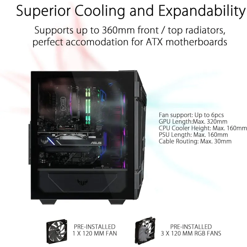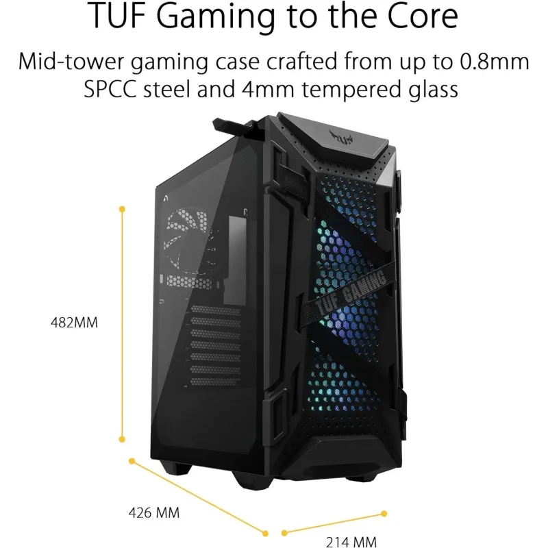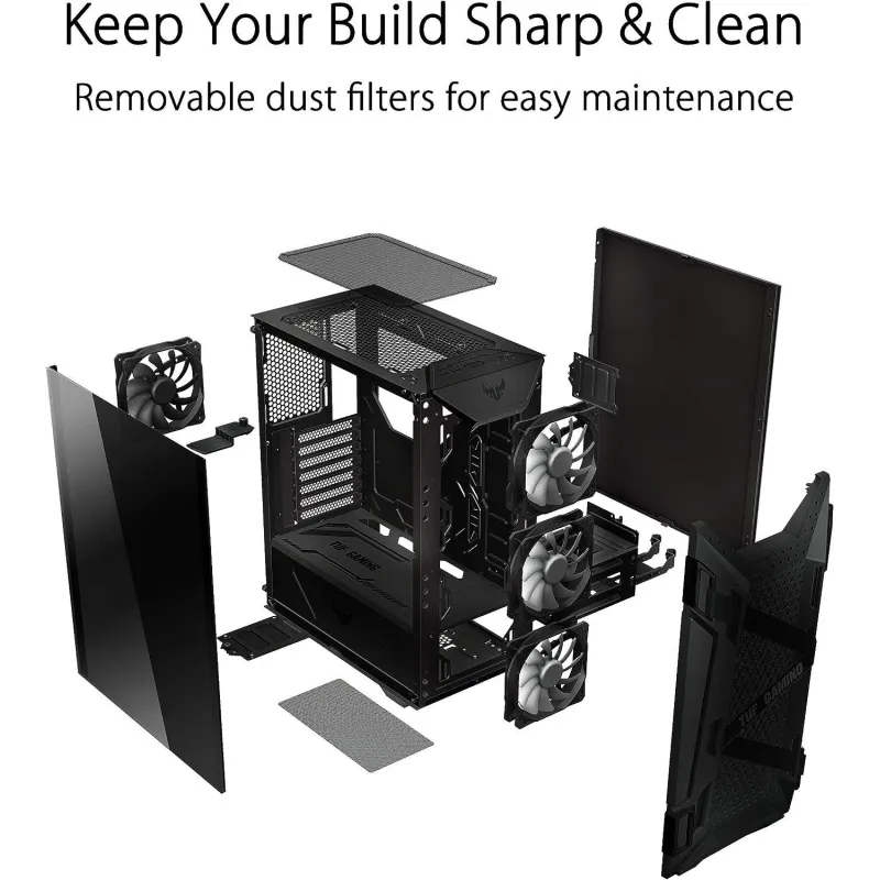 EXCELENTE JUEGO COMPACTO: El TUF Gaming GT301 es un chasis lleno de características y hecho para las masas, el chasis compacto optimizado soporta hasta 4 x 2.5” SSDs, 2 x 3.5” HDDs y filtro de polvo de fácil extracción en el frente, la parte superior y la parte inferior.