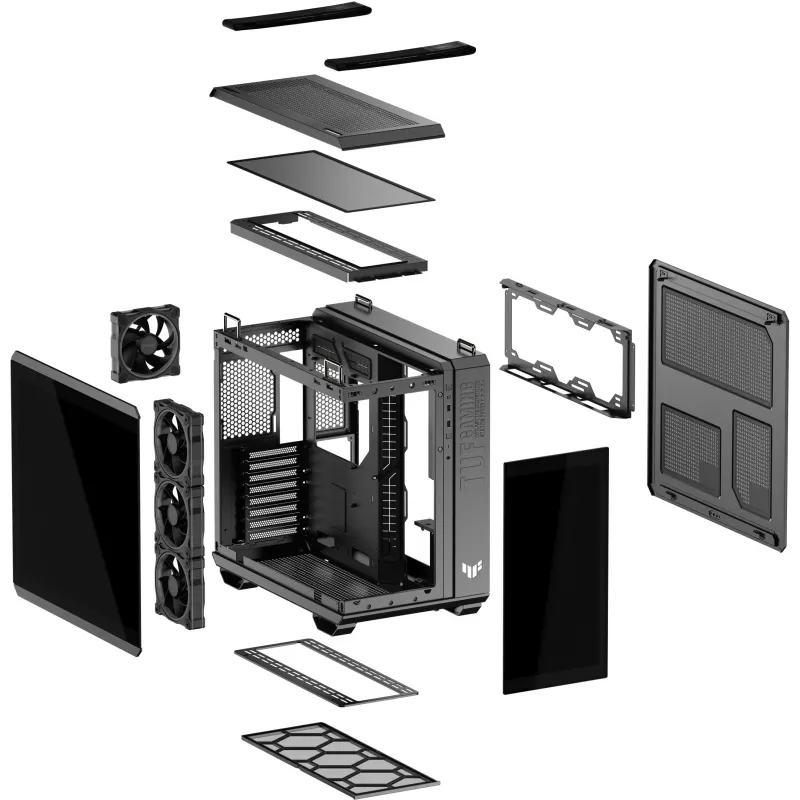 Torre Asus TUF GAMING GT502 Horizon TG ARGB Black con ventiladores 120 mm, panel de vidrio templado y bahías 2.5 pulgadas