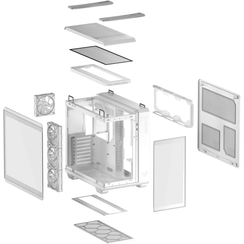 Torre Asus TUF GAMING GT502 Horizon TG ARGB White con panel de vidrio templado, ventiladores laterales 120 mm