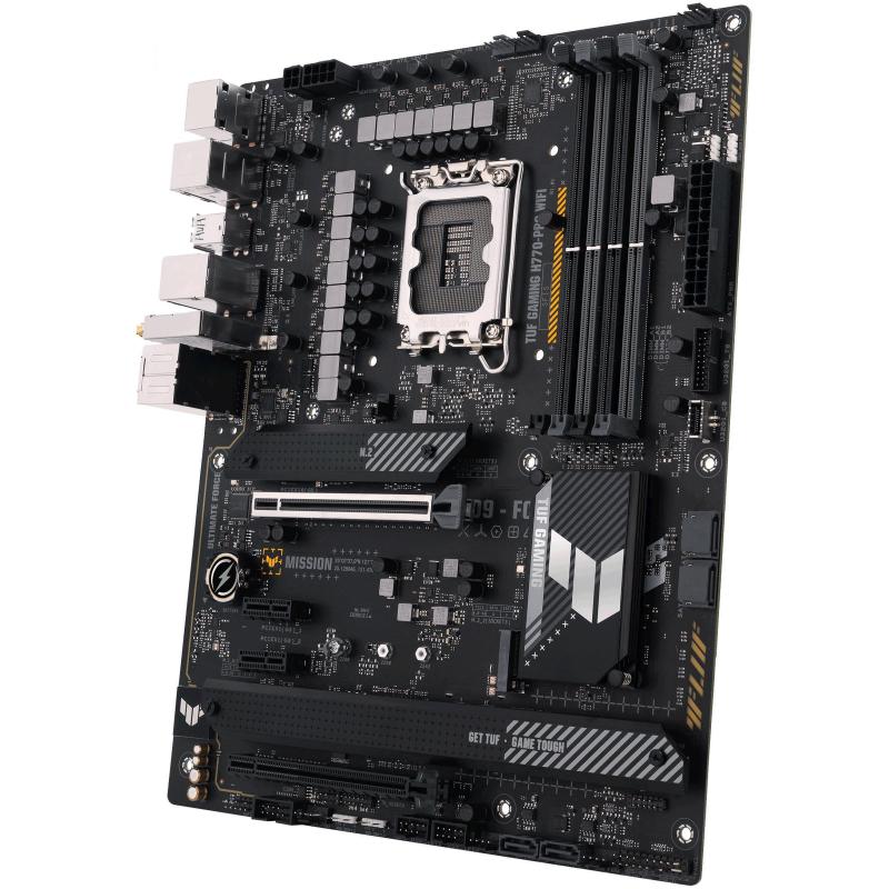 Conectividad: La TUF-GAMING H770-PRO WIFI alcanza nuevas alturas de potencial de rendimiento con la última versión de PCI Express, mientras que un arsenal de puertos USB incluye dos conexiones Tipo-C, y Thunderbolt 4 expande aún más la compatibilidad y el ancho de banda.