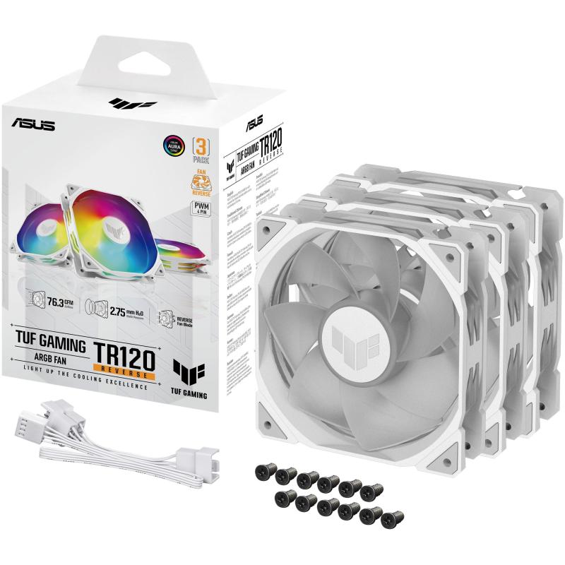 Asus TUF Gaming TR120 ARGB Reverse Fan Triple Pack Ventilador Suplementario 120mm Blanco