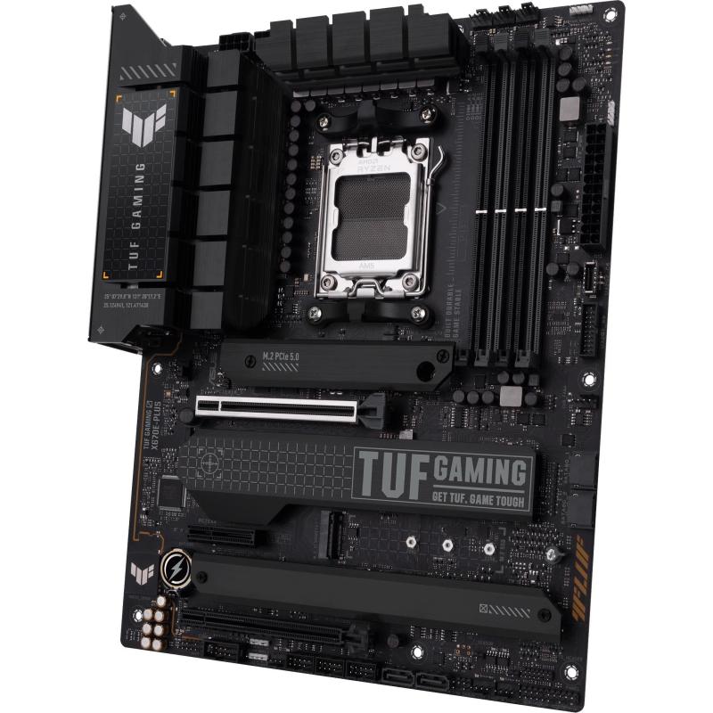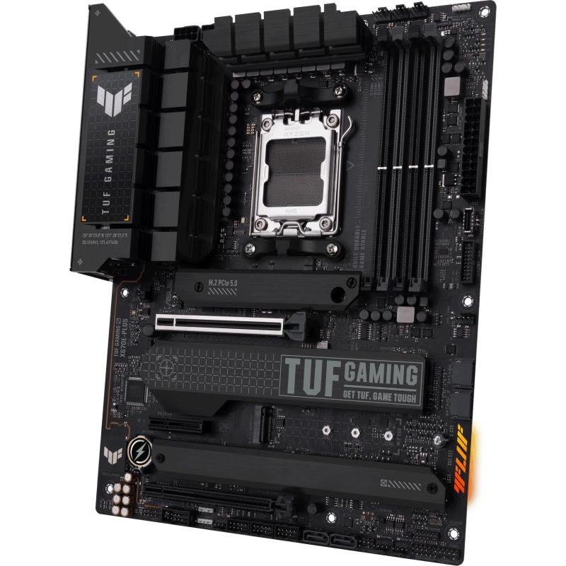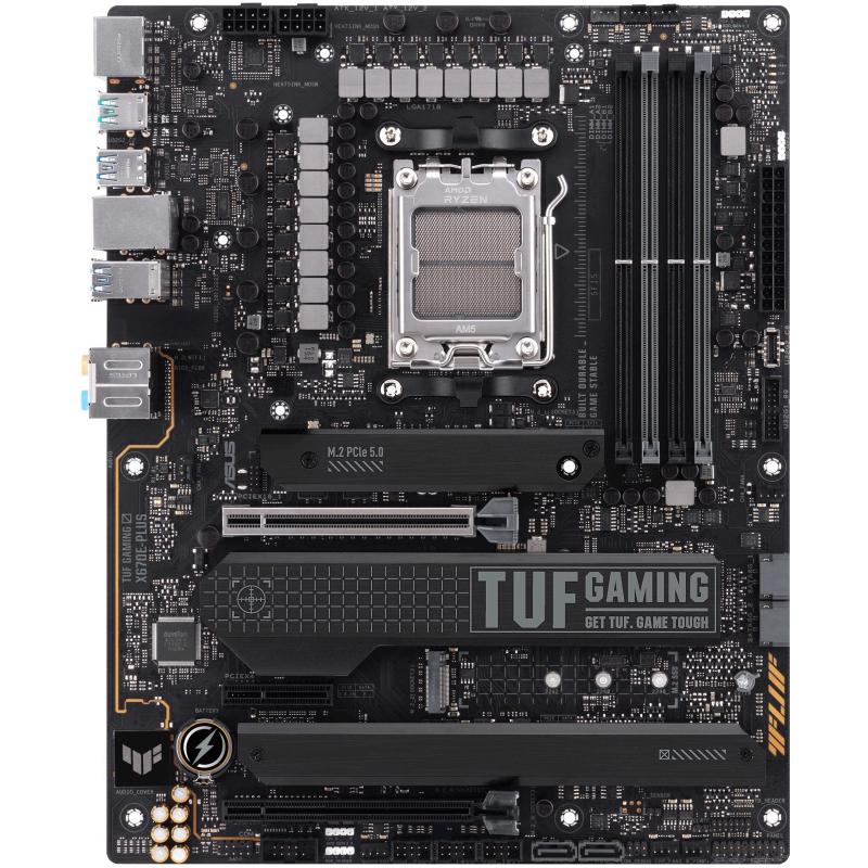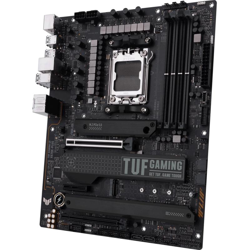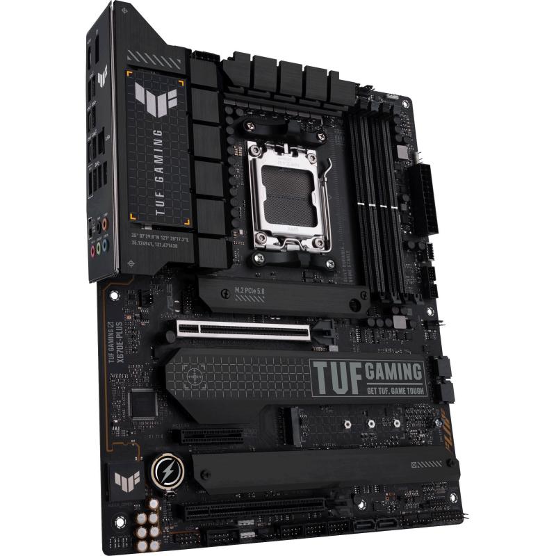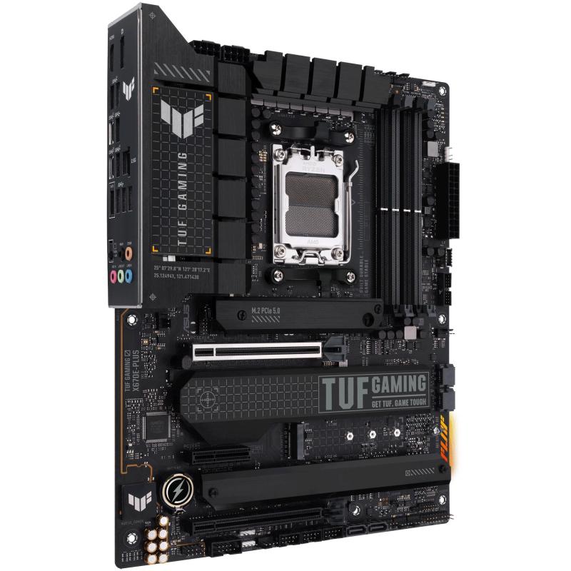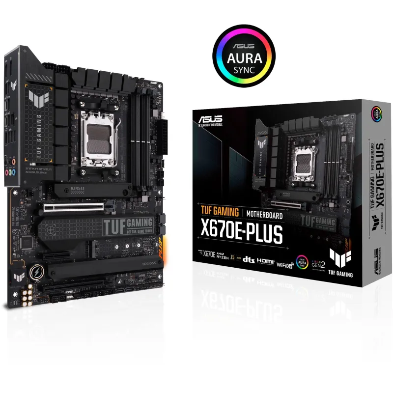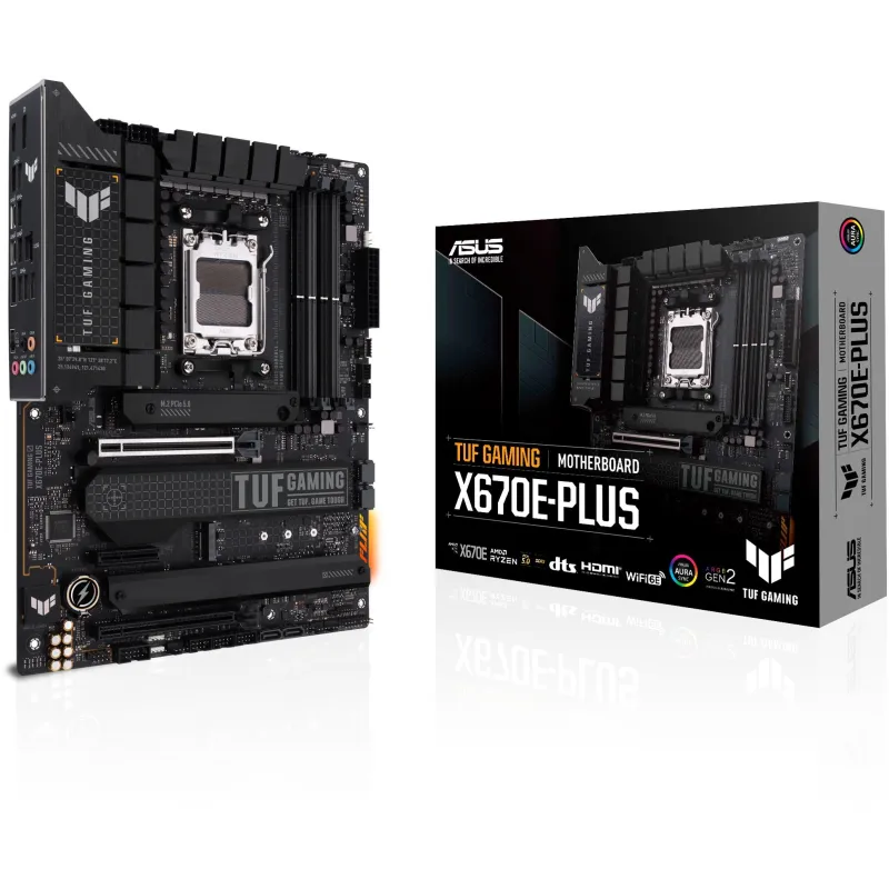 ASUS TUF GAMING X670E-PLUS: Toma todos los elementos esenciales de los últimos procesadores AMD Ryzen serie 7000 y los combina con características listas para jugar y durabilidad probada. Diseñada con componentes de grado militar, una solución de alimentación mejorada y un completo sistema de refrigeración, esta placa base va más allá de las expectativas con un rendimiento sólido como una roca y estable para juegos maratonianos. Las placas base TUF GAMING también se someten a rigurosas pruebas de resistencia para garantizar que pueden soportar condiciones en las que otras podrían fallar. Estéticamente, este modelo incorpora elementos de diseño geométricos y en negro roto para reflejar la fiabilidad y estabilidad que definen la serie TUF GAMING.