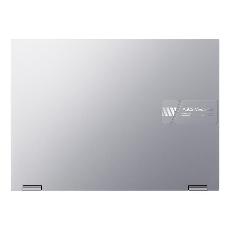 ¡ATRÉVETE A SER GENIAL, ATRÉVETE A SER TÚ MISMO!: El Vivobook S 14 Flip cuenta con dos acabados posibles, el moderno Quiet Blue o el clásico Cool Silver, con una tapa metálica que le da un toque especial. En el interior, la tecla Enter resaltada con rayas de advertencia se suma a la exclusividad de su aspecto. Además, su chasis ligero de 1,5 kg y su perfil ultradelgado apto para mochilas te permiten llevarlo a cualquier lugar con total facilidad. El Vivobook S 14 Flip se adapta a tu mundo, donde quiera que te lleven tus pasos.