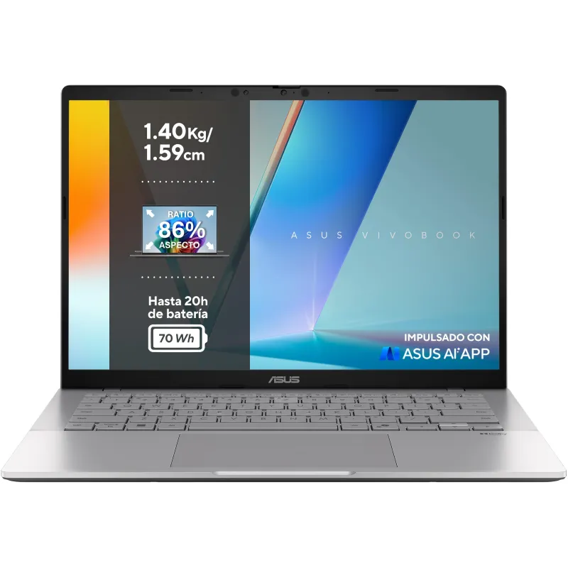 EXPERIMENTA LA IA SIN ESFUERZO: Con el ASUS Vivobook S14, tu compañero ideal para el día a día. Ya sea para trabajar, estudiar o entretenerte, este ASUS Copilot+ PC te ayuda a superar cualquier tarea, diseñado para ser más productivo, inteligente y seguro. Su elegante diseño metálico es tanto práctico como estilizado, mientras que el procesador Snapdragon® X y hasta 30,5 horas de autonomía garantizan una productividad durante todo el día. Disfruta de imágenes impresionantes en su vibrante pantalla 16:10 FHD OLED o 2.5K IPS, junto con un sonido envolvente para mejorar tus videollamadas y streaming. Diseñado para un estilo de vida equilibrado, el ASUS Vivobook S14 hace más por ti, dándote más tiempo para disfrutar de los momentos cotidianos de la vida.