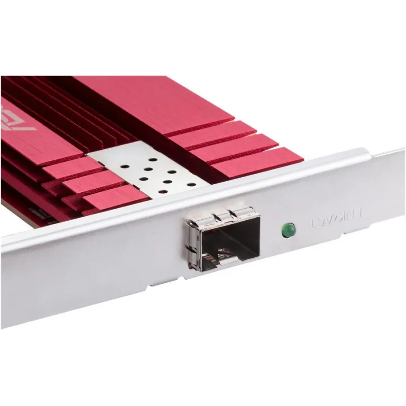 TECNOLOGÍA DE CONECTIVIDAD QUE ROMPE BARRERAS: Diseñada para conexiones alámbricas de última generación, esta solución utiliza la interfaz PCI Express como puente hacia un rendimiento superior. La incorporación de fibra óptica con conector SFP+ proporciona velocidades vertiginosas y una estabilidad inquebrantable, incluso en los entornos más exigentes. Este enfoque permite que las empresas y usuarios avanzados disfruten de una conectividad sin precedentes, eliminando cuellos de botella y maximizando la productividad.