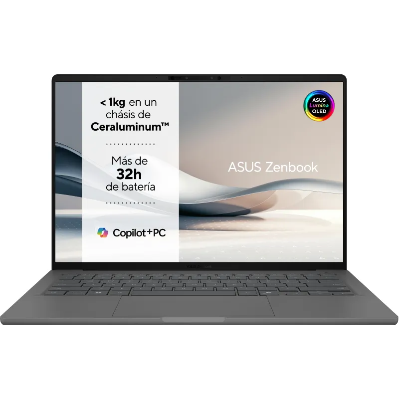 DISEÑO ULTRALIGERO Y ELEGANTE PARA UNA MOVILIDAD SIN COMPROMISOS: El Portátil Asus Zenbook A14 OLED UX3407QA-QD412W Copilot+ PC destaca por su estructura de aluminio y magnesio, que no solo aporta resistencia, sino también un peso sorprendentemente bajo de 980 gramos. Su acabado en Iceland Gray le otorga un aspecto moderno y sofisticado, ideal para usuarios que buscan estilo y funcionalidad. Gracias a su pantalla OLED de 14 pulgadas, disfrutarás de una experiencia visual envolvente con colores precisos y negros profundos. Este portátil es perfecto para quienes necesitan un equipo potente y fácil de transportar, sin renunciar a la calidad de imagen ni al rendimiento. Además, su diseño tipo concha lo hace cómodo de usar en cualquier entorno.
