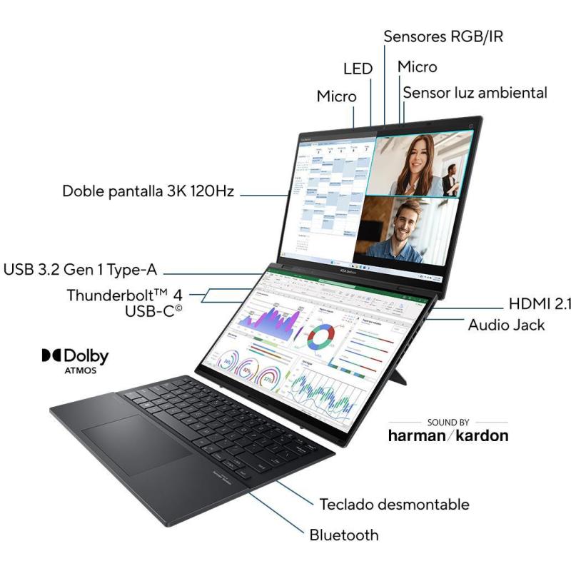 Ordenador Portatil Asus Zenbook Duo OLED UX8406MA-PZ271W Intel Core Ultra 9-185h/32GB/2TB SSD/14" W11 Home