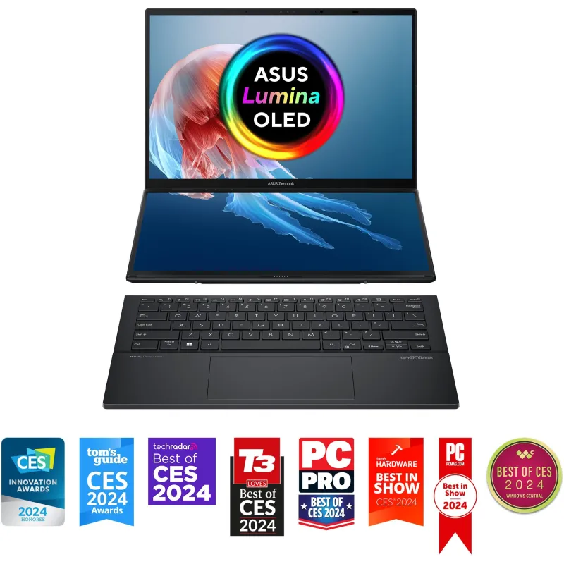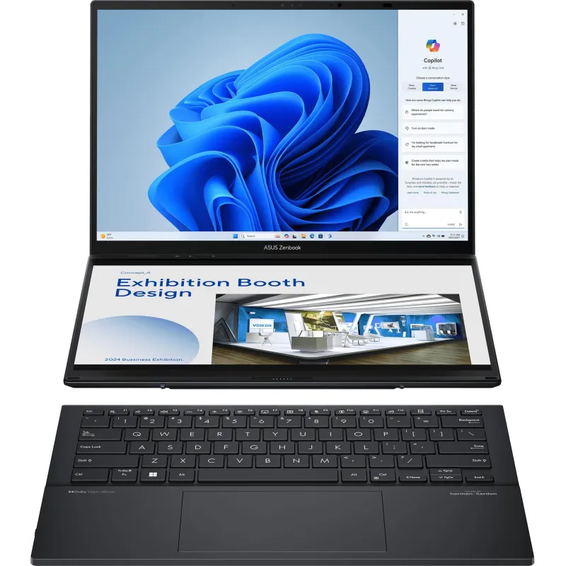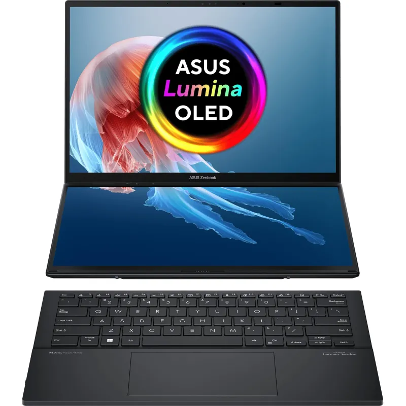 Portátil Asus Zenbook DUO UX8406MA-PZ255W Procesador Intel Core Ultra 9-185H, Memoria RAM 32GB, Almacenamiento de 1TB SSD, Pantalla de 14" Pulgadas Táctil Windows 11 Home Negro