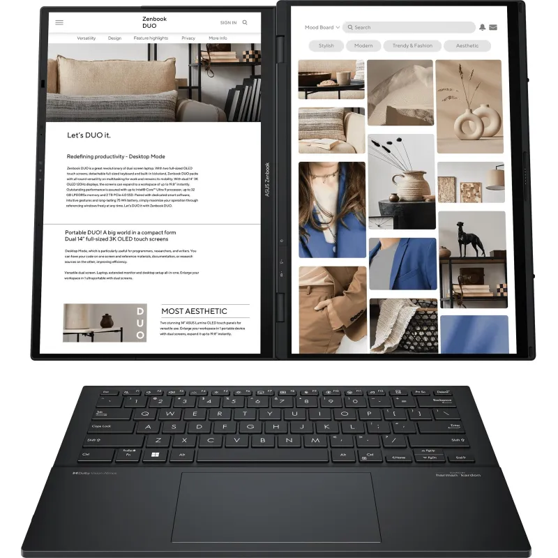 Portátil Asus Zenbook DUO UX8406MA-PZ255W Procesador Intel Core Ultra 9-185H, Memoria RAM 32GB, Almacenamiento de 1TB SSD, Pantalla de 14" Pulgadas Táctil Windows 11 Home