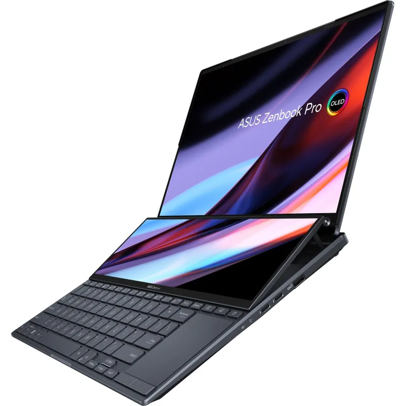 Prepárate para conocer el potente Zenbook Pro 14 Duo OLED, un dispositivo con certificación Intel® Evo™ que te permite exprimir al máximo tu creatividad. La CPU Intel de alta gama y la GPU NVIDIA® para creadores ofrecen un rendimiento óptimo gracias a la tecnología ASUS IceCool Plus y al nuevo mecanismo AAS Ultra, que ayuda a ventilar los componentes internos al tiempo que inclina la pantalla táctil secundaria ScreenPad™ Plus en el ángulo ideal para interactuar con las aplicaciones. La pantalla principal táctil 2,8K OLED HDR 16:10 tiene una frecuencia de refresco de 120 Hz, una precisión cromática validada por PANTONE® y soporta la gama de color DCI-P3 al 100%. Diseñado para creadores exigentes, el Zenbook Pro 14 Duo OLED es un portátil OLED compacto que deja en la sombra a sus rivales.