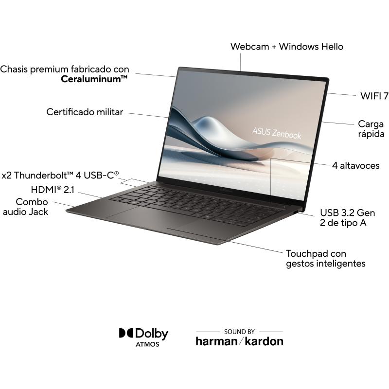 Ordenador Portatil Asus Zenbook S 14 OLED UX5406SA-PZ240W Intel Core Ultra 7-258V/32GB/1TB SSD/14" W11 Home Gris