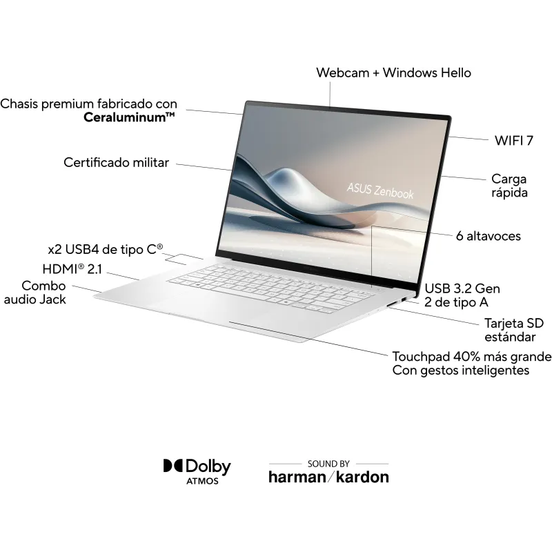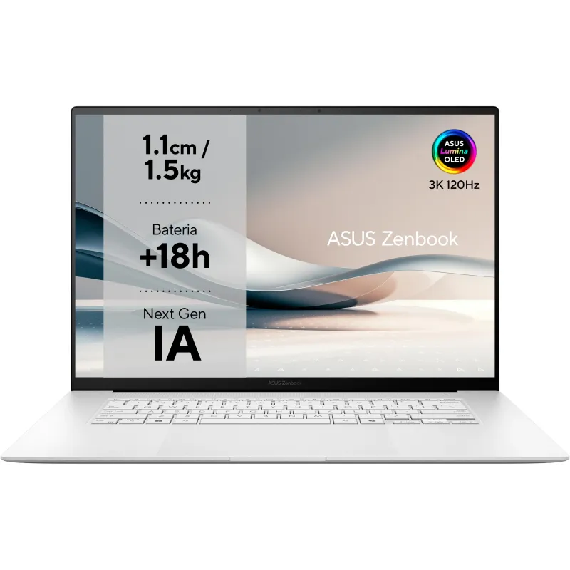 El Portátil Asus Zenbook S 16 OLED UM5606WA-RK370W Copilot PC+ combina diseño premium con un rendimiento de última generación. Su pantalla OLED 16 pulgadas ofrece una resolución de 2880 x 1800 píxeles y una tasa de refresco de hasta 120 Hz, proporcionando una experiencia visual nítida y fluida. Gracias a su relación de aspecto 16:10 y su brillo HDR de 400 nits, este portátil es ideal para quienes buscan calidad de imagen superior. La tecnología HDR True Black 500 y la cobertura del 100% del espacio de color DCI-P3 garantizan colores intensos y negros profundos. Su carcasa de aluminio en color blanco nórdico no solo aporta estilo, sino también resistencia. Con un peso de apenas 1,5 kg, es perfecto para usuarios que necesitan movilidad sin sacrificar potencia o calidad visual.