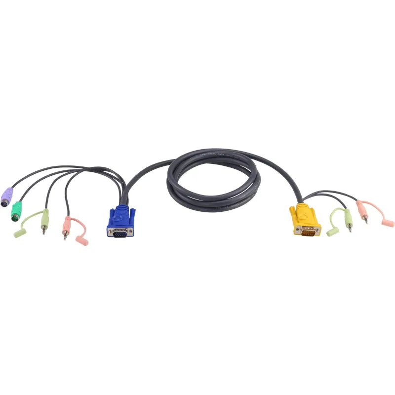 Cable Aten 2L-5302P VGA PS/2 de 1,8 m con audio 3.5 mm, conectores macho-macho, diseño negro