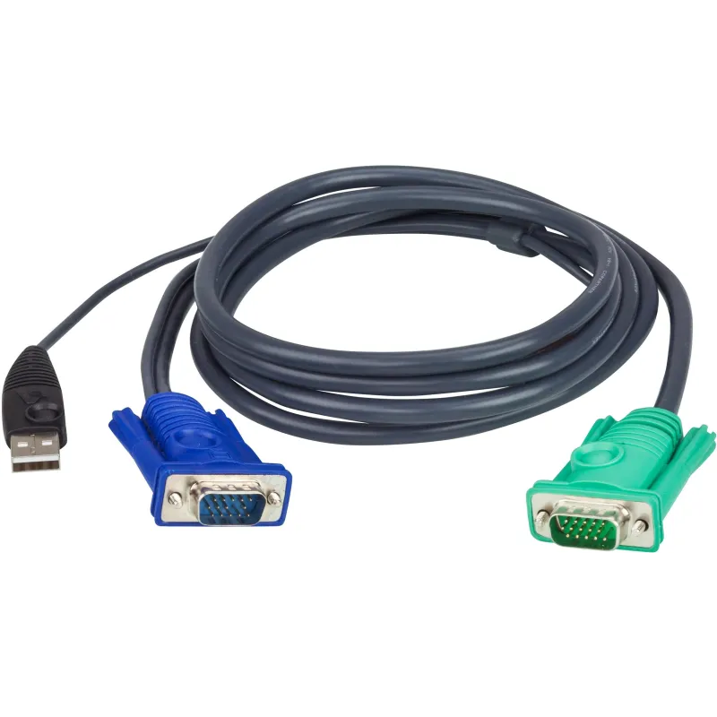 Cable VGA Aten 2L5201U con conector SPHD-15 macho, longitud de cable 1.2 m, color negro, conectores HD-15 y USB A macho, compatible con múltiples modelos
