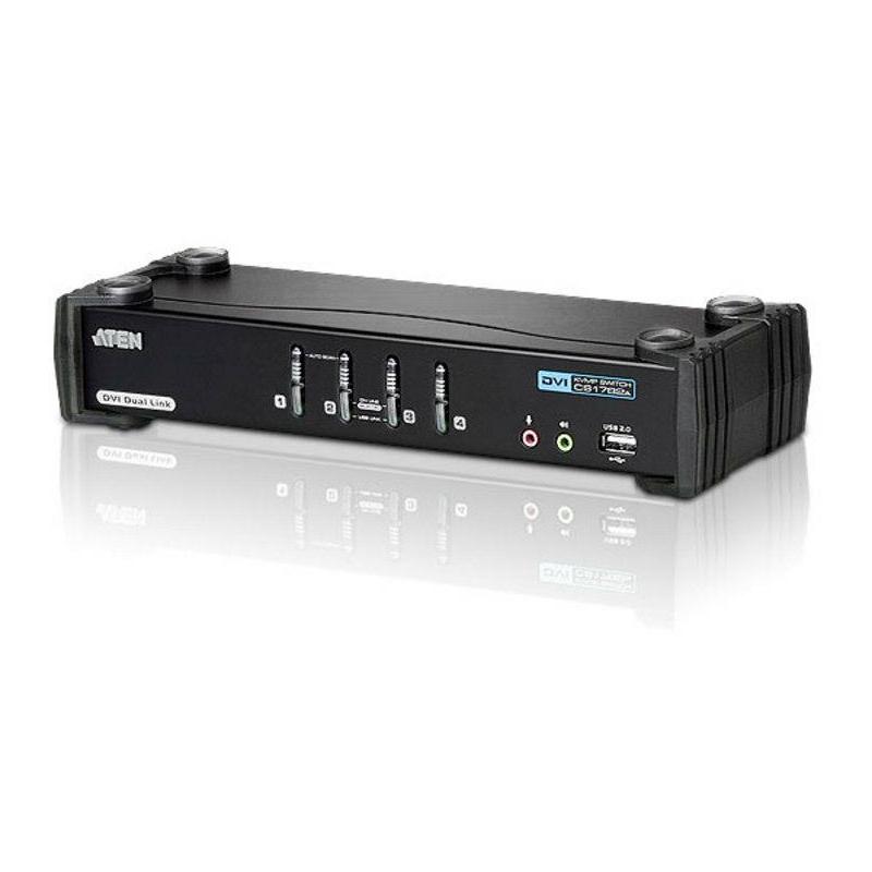 Switch KVM Aten CS1784A-AT-G Controla 4 PCs con USB y DVI-I soporta WQXGA audio y hub USB 2.0 Diseño robusto en metal
