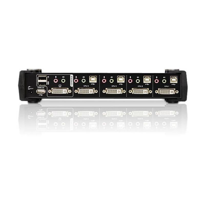 Switch KVM Aten CS1784A-AT-G Controla 4 PCs con USB y DVI-I soporta WQXGA audio y hub USB 2.0 Diseño robusto en metal con accesos rápidos.