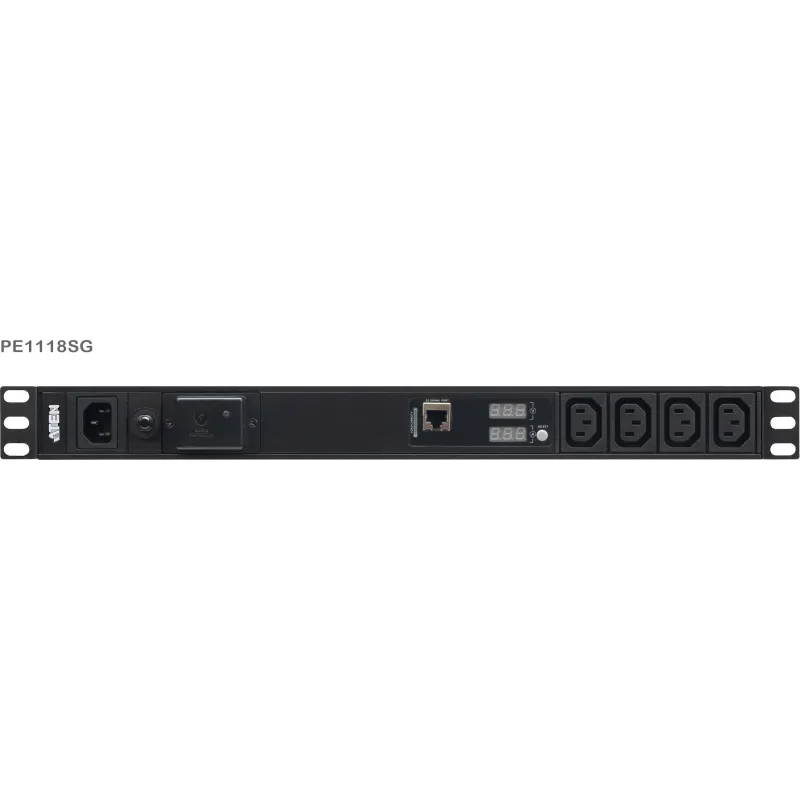 PDU Aten PE1118SG-AT-G con 18 salidas AC, pantalla LCD, montaje en rack 1U, protección contra sobrecarga y monitoreo de corriente
