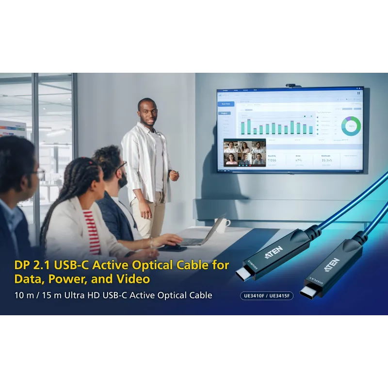 Si necesitas un USB-C largo de verdad para una instalación fija (sala de reuniones, aula, mostrador técnico o rack), el ATEN UE3410F está hecho para llegar donde un cable pasivo se queda corto. Son 10 metros con diseño activo óptico, orientado a mantener un enlace estable en tiradas largas.