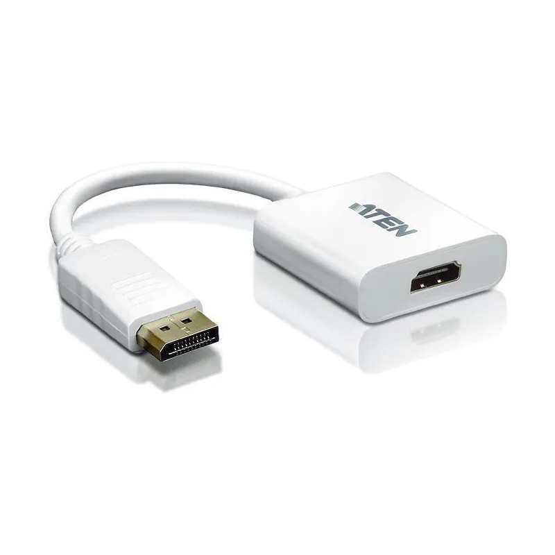Adaptador Aten VC985-AT DisplayPort a HDMI, soporta 1920x1200, DisplayPort 1.1a, 60 Hz, diseño compacto en plástico blanco