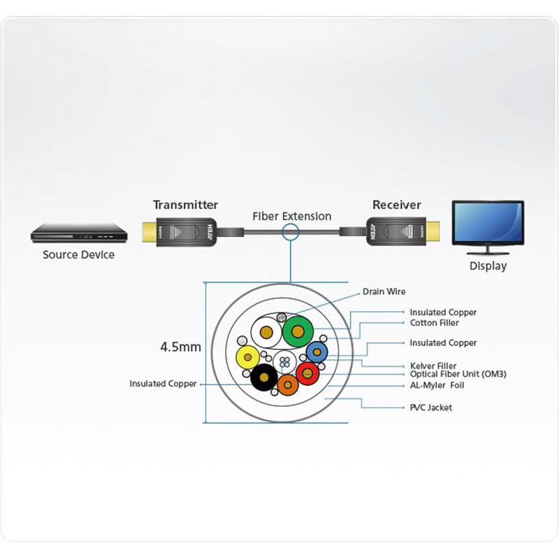 Cable HDMI Aten VE781020-AT óptico activo 2.0 True 4K de 20 M Alta velocidad de 18 Gbps HDR ARC y HDCP 2.0 Conectores chapados en oro