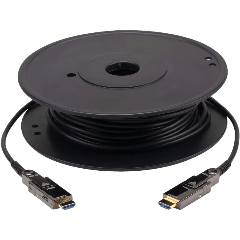 LOS CABLES ÓPTICOS VE7831A DE ATEN: Los cables ópticos VE7831A de ATEN utilizan la tecnología AOC, que permite convertir las señales de entrada en señales de salida para obtener transmisiones de datos óptimas que requieren un ancho de banda elevado. Los cables ópticos resistentes a la EMI tienen una longitud de 10 m y son totalmente compatibles con las resoluciones True 4K. Cumplen íntegramente con los estándares HDCP 2.2 y satisfacen las especificaciones HDMI, entre las que se incluyen 3D y Color Profundo. Además, ofrecen velocidades de transmisión de datos de hasta 18 Gbps. Al ser compatibles con Dolby True HD y DTS-HD Master Audio, estos cables ópticos garantizan transmisiones de señales de audio sin pérdidas. Por otro lado, esta serie de cables incluye un canal Ethernet HDMI (HEC) que permite combinar flujos de audio, vídeo y datos en un mismo cable, lo que permite compartir tanto la conexión a Internet como las aplicaciones basadas en IP a través de HDMI. Asimismo, es compatible con el canal de retorno de audio (ARC). Esto permite transmitir la señal de audio desde y hacia el televisor y el sistema de audio, lo que reduce el número de cables necesarios entre el televisor y el sistema de cine en casa o la barra de sonido externos.