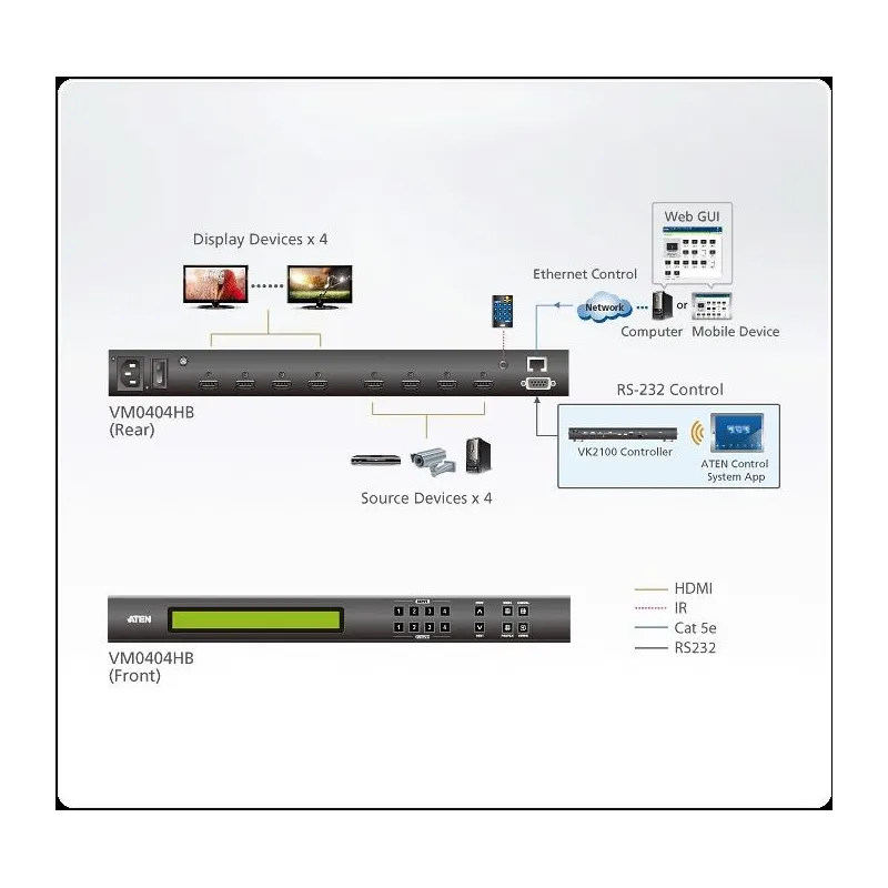 Aten VM0404HB-AT-G Switch Matriz de conmutación HDMI True 4K 4 x 4 Negro