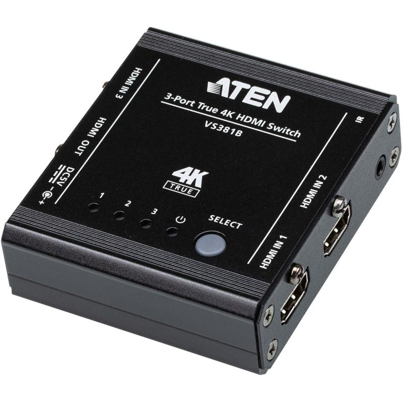 Switch ATEN VS381B-AT con resolución 4096 x 2160 píxeles, tecnología Dolby Vision y 4 puertos HDMI, soporta 4K Ultra HD y conexión Plug and Play
