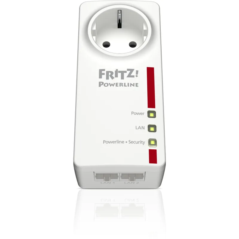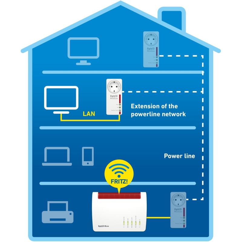 - Una nueva clase de PLCs - FRITZ!Powerline 1220E amplia y vincula la red del router a través de la red eléctrica con tasas de transferencia de datos de hasta 1200 Mbps.