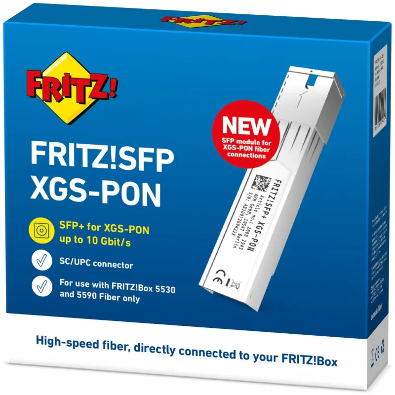 Módulo Transceptor AVM Fritz!SFP XGS-PON de Red SFP con Conector de Fibra Óptica 10Gbit/s de Velocidad de Transferencia y Hasta 20000 m de Distancia de Uso