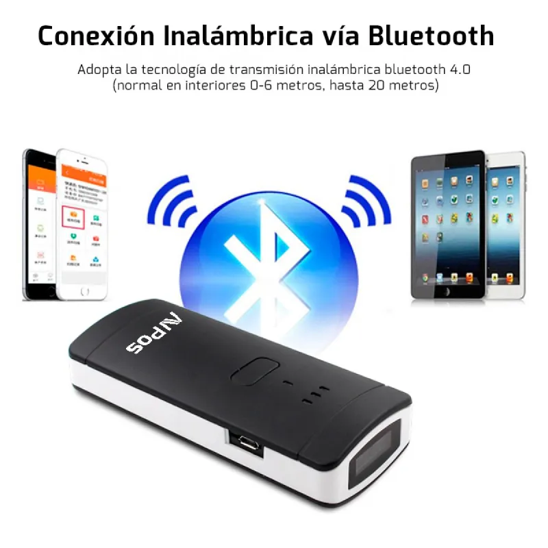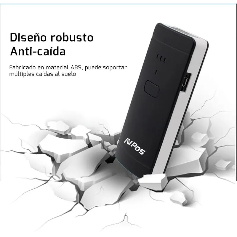 Lector de Códigos Barras Avpos AVP-BP200-2D con velocidad de lectura 1500 lecturas/s, batería 1600 mAh y conectividad Bluetooth inalámbrica