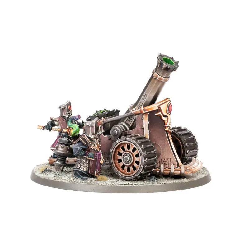 La Batería de cohetes aullamuertes concentra su fuerza en abatir criaturas enormes antes de que dominen el combate. En Warhammer Age of Sigmar cada disparo cuenta, y esta Batería de cohetes aullamuertes convierte cada oportunidad en una amenaza real. Sus cargas con energías oscuras fuerzan al rival a cubrir héroes y bestias de alto valor. Si el objetivo exige otro perfil, alterna tu plan con la opción Bombarda Torturadora sin perder coherencia visual. En Warhammer Age of Sigmar la disuasión es táctica pura. Con dos turnos bien medidos, la Batería de cohetes aullamuertes abre brechas, controla zonas y crea ventanas para rematar. La presión constante define partidas cerradas, y Bombarda Torturadora ofrece flexibilidad cuando el terreno limita.