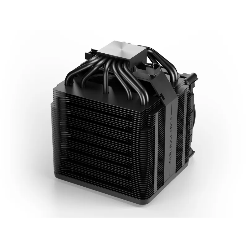 En términos de diseño, el producto cuenta con un elegante color negro, una base de cobre y aletas de aluminio para una óptima transferencia de calor. Con siete tubos disipadores de calor y dos ventiladores, el flujo de aire es maximizado. Su potencia de diseño térmico (TDP) de 270 W lo hace ideal para sistemas de alto rendimiento.