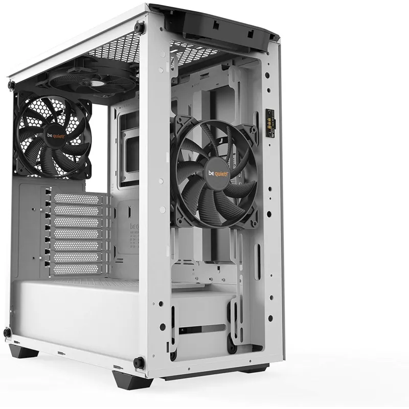 3 PURE WINGS 2 PREINSTALADOS: Funcionamiento silencioso. 3 ventiladores Pure Wings 2 preinstalados con aspas optimizadas para el flujo de aire que aseguran un flujo de aire y una refrigeración perfectos. A pesar del diseño compacto del chasis, los ventiladores en la parte frontal, superior y trasera son modelos de 140mm, lo que resulta en un funcionamiento muy silencioso. Se pueden instalar hasta dos ventiladores adicionales de 140mm.