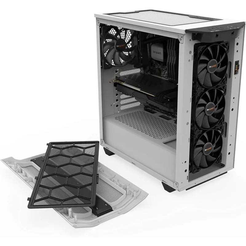ALTO FLUJO DE AIRE Y MÁXIMO RENDIMIENTO: Todas las partes están optimizadas para el flujo de aire y el rendimiento. Para todos aquellos que buscan el máximo rendimiento y especialmente con sistemas refrigerados por agua, el Pure Base 500DX Black con su cubierta frontal y superior extremadamente permeable al aire es la elección correcta. Los filtros de polvo en la parte frontal e inferior son fáciles de quitar para su limpieza.